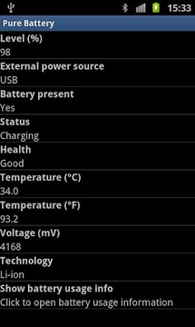 美观,整洁和优雅的,没有不必要的图形杂乱的电池部件。允许您监视当前主屏幕上的电池电量。你也可以点击查看详细的电池规格和电池的使用统计。