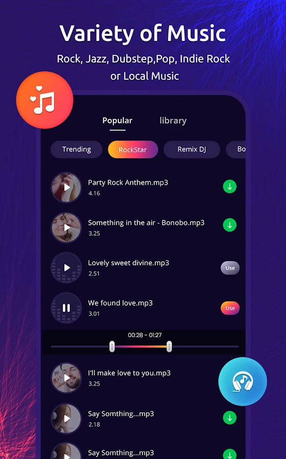 1.用户可以随便运用。它拥有在线编纂,一键音轨和一键提取背景音乐;