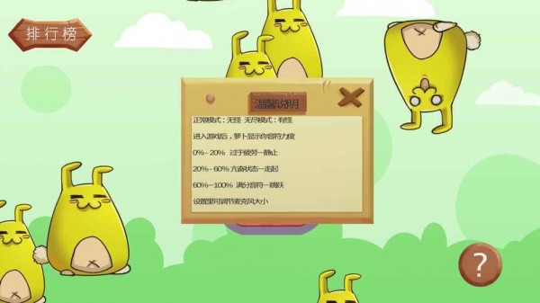 通过声控的方式来帮助兔子进行跳跃,可以自由选择两种不同的游戏模式。