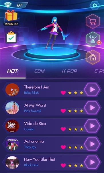 3、定期更新流行流派的新内容,如流行、韩流、嘻哈、摇滚和 EDM。