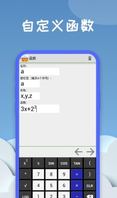 用户能够自定义函数的设置,输入相应的内容名称、键标签、参数、以及相应的函数即可
