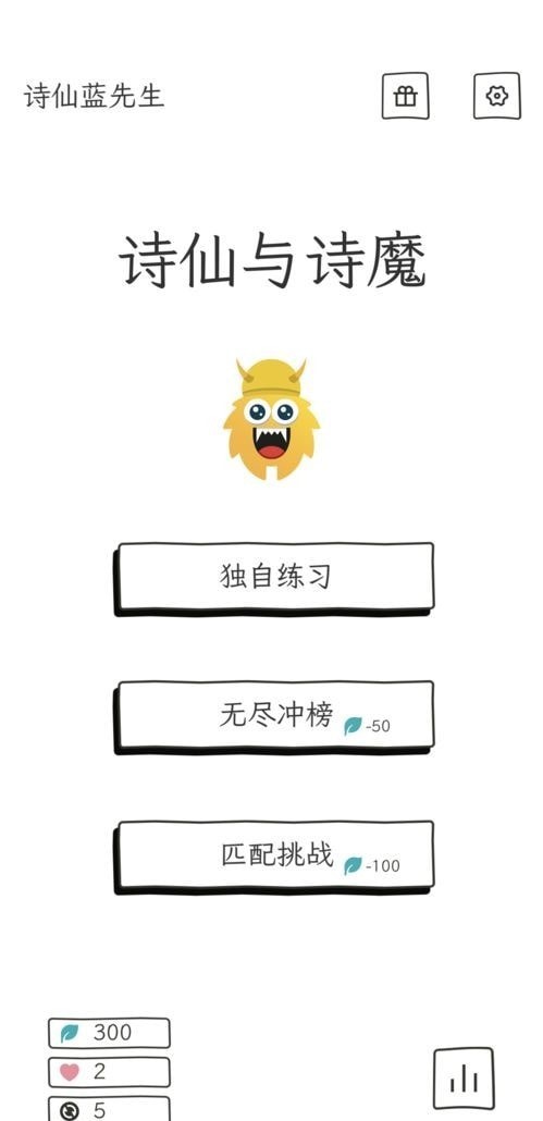 诗仙与诗魔游戏有独自游玩,无限冲榜,匹配挑战三种游戏模式。你能挑战成功吗?快来试试看吧!