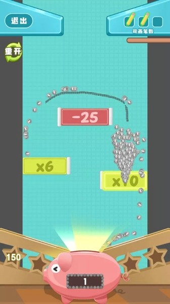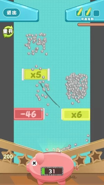3、你只需要通过画线,让你的小猪存钱罐吃到更多金币即可。