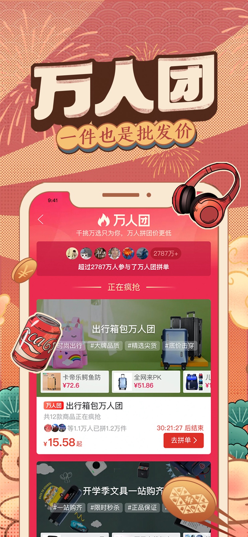 拼多多5.86.0版本是专门的线上购物服务软件,该软件的主要功能是给用户提供丰富的优质商品和优惠福利,用户使用起来非常的方便,强大的功能和性能在这块有着非常不错的表现,用户可根据自己的需求来购物,随时可以在线下单,商品多多,可满足用户的一切购物需求,非常的实用给到用户最完善的使用体验,快来下载试试吧。