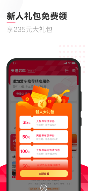 天猫养车是专门的养车服务软件,该软件的主要功能是给用户提供全面的养车服务,用户使用起来非常的方便,强大的功能和性能在这块有着非常不错的表现,用户可根据自己的需求来使用,随时可以在线了解最全的养车服务,功能齐全,服务周全,可满足用户的一切养车需求,非常的实用给到用户最完善的使用体验,快来下载试试吧。