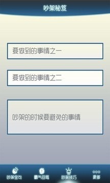 吵架秘笈app能够帮助小伙伴们轻松应对各种吵架场景,在吵架的时候不会出现语塞的情况。软件提供的所有语句都不会携带一个脏字,让小伙伴们可以随意输出,同时可以在吵架的时候释放自己的压力,获得还可以因为不打不相识而认识更多的朋友。对这款软件感兴趣的朋友们快来下载试一试吧!