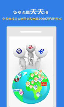 身边免费WiFi是一款可以免费连接公共WIFI热点的上网工具,独家免费接入移动、联通、电信WiFi热点,5000万网民的选择,2000万WiFi热点覆盖任你连接,实现无限时间海量流量高速免费无线上网,独特的一键连网功能,自动分析匹配最优质的网络资源,为您省去高额的流量费用,适合在外奔波的商务人士、网络达人,不用担心没有到月底就没流量。