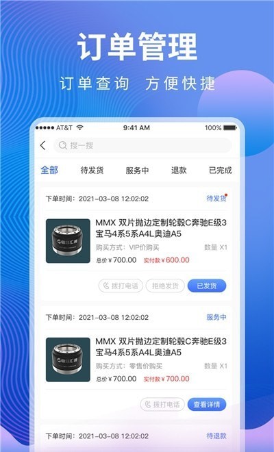 汇修帮商家端app能够有效地提升用户们管理汽车店铺的效率。使用这款软件能够及时处理所有的维修订单及商品订单,可以高效地完成所有的汽车维修工作,也可以及时将所有的汽车用品发出。通过这款软件能够为客户提供优质的服务,为管理工作带来了极大的便利。如果这款软件能够对你提供帮助,快来下载试一试吧!