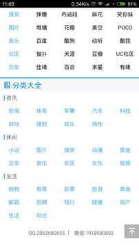 第一个版本,主要收集了大量常用网址链接,并按各种分类展示。并且具有搜索功能。同时,主打简约,不需太多繁琐的操作,用户只需点击选中的条目进行浏览即可。安装包也很小,节约用户存储空间。