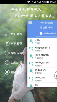 WiFi密码钥匙,让你随时随地免费上网看小说、看电影、看美图、看新闻、看漫画、玩游戏、听音乐、查地图、找团购、上淘宝、打专车,是出差旅游购物学习的必备应用!占用内存极少,不给手机带来额外负担,上网无忧。
