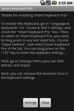 SmartKeyboardPro(智能键盘专业版)是一款支持字词联想,自带多款皮肤,支持在标准全键盘/T9键盘/紧凑键盘间切换,可线上下载多国词库,功能相当强大。