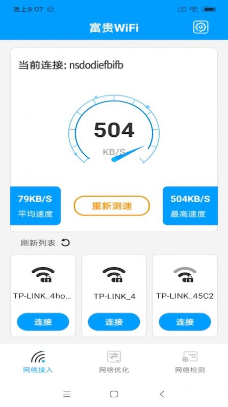 富贵WiFi连接官方版是专门的网络连接服务软件,该软件的主要功能是给用户提供全面的连接服务,用户使用起来非常的方便,强大的功能和性能在这块有着非常不错的表现,用户可根据自己的需求来连接,随时可以在线轻松连接,功能齐全,操作简单,可满足用户的一切连接需求,非常的实用给到用户最完善的使用体验,快来下载试试吧。