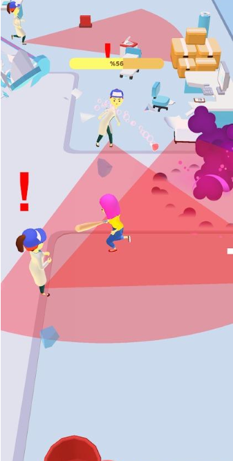 2、你可以利用手里的棒子打碎所有物品,只要躲过保安的视线,就可以为所欲为,
