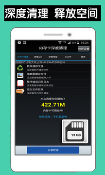 《内存卡深度清理》强大扫描分析系统,轻松找出内存遗留已久的垃圾文件和应用卸载残残留数据。