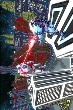 ✓未来派机器人英雄战斗环境与大城市。