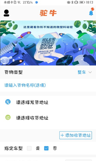 驼牛app是今天小编带来的一款非常好用的货运服务软件。平台上入驻了非常多专业的货运司机,用户们可以通过这款软件将货物安全快速地送往目的地。用户们只需线上下单便会有专门的货运人员接单,所有的货运费用都是明码标价的,用户们也可以查看货运物流的详细情况,获得更加便利的货运体验。