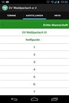 Die App rund um den SV Waldperlach.Die App richtet sich an alle Mitglieder, Freunde und Fans des SV Waldperlach. Alle in der App vorhandenen Daten k?nnen ebenfalls auf der offiziellen Vereinsseite eingesehen werden.Lassen sie sich die aktuellen Termine des Vereins anzeigen, aufgeteilt nach den einzelnen Vereinsbereichen. Ebenso werden sie beim S…...
