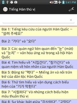 Đây là các bài trong series "Tiếng Hàn thú vị" từ trang http://thongtinhanquoc.com. Hy vọng ứng dụng sẽ giúp ích cho những người đang học tiếng Hàn.Keywords: Tieng Han thu vi, Interesting Korean, Thông tin Hàn Quốc