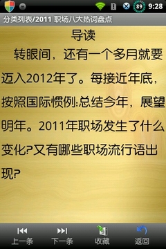 本软件从网络上收集整理2011年各类年终盘点与总结,包括国内外新闻、社会热点事件、最新IT与科技、娱乐圈八等多个不同的分类,让您更全面的了解过去的2011年里面那些人和事。内容将不断的增加,您可以实时更新。
