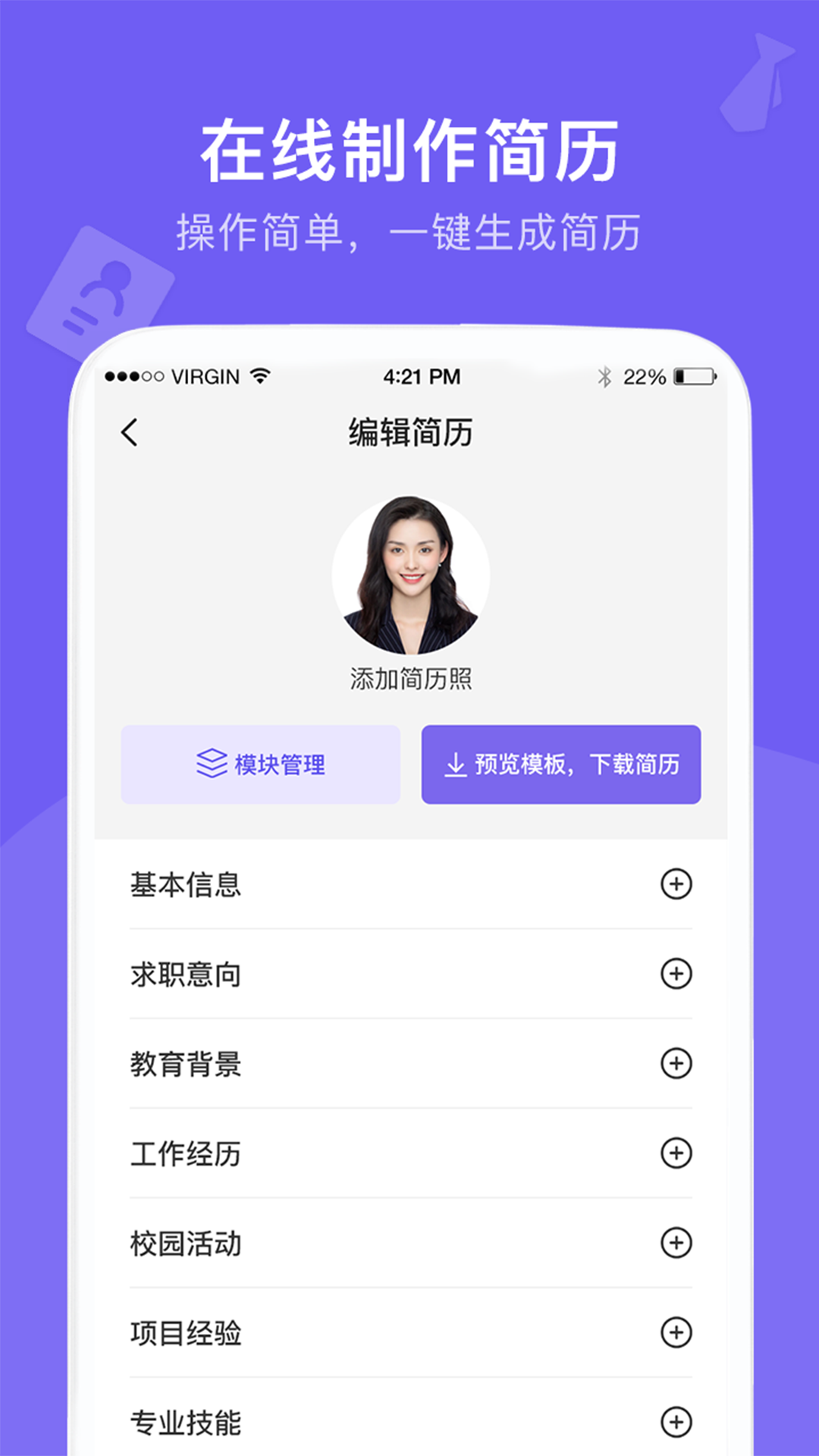 2.可直接经由平台开启建造私人简历编纂性能周全操作起来很易懂,并且也是拥有简历布景设置的加入音乐。