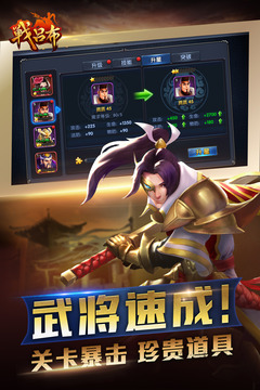 游戏以三国为主题,玩家要在烽火狼烟的乱战世界中自由探索,发现一个有一个隐藏在三国乱世背后的故事剧情,通过武将召唤及自由阵法搭配,结合武将养成,强化装备,不断加强自己的实力,带领出一个专属的最强军队,征服一个又一个敌国势力,成为三国乱世上的终极霸主。