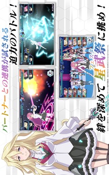学战都市Asterisk(学戦都市アスタリスク)是一款根据动画该表而成的剧情和内容十分风格的日系风格的角色扮演类手游,游戏中将会有各种二次元妹子与你一起对战PK,玩起来十分的火爆刺激哦! 学战都市Asterisk游戏详情 ◆手机游戏《学战都市Asterisk Festa 闪耀的史黛拉》是? 本作是以水上学园都市“六花”为背景,除了主要的尤莉丝·克劳蒂娜·纱夜等星导馆学园的角色外,还包含其他学园,和众多女性角色一起开始学园生活。 除了在冒险模式中和角色进行对话或者直接接触加深感情外,在战斗模式中可以看到3D角色的充满爽快的战斗。详细会继续公开。 ◆TV动画《学战都市Asterisk》是? 是根据三屋咲ゆう原作的大人气小说《学战都市Asterisk》的TV动画作品。在2015年10月开始放送第一季。从2016年4月开始决定放送第二季。