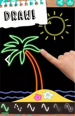 3、一键绘图,很棒的贴纸集,发光的霓虹灯涂鸦游戏的孩子。