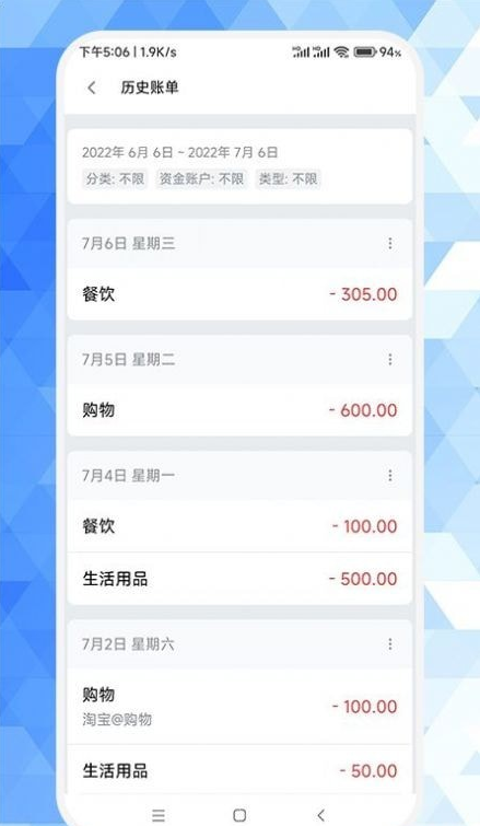 将所有的账目都清晰的记录下来,用户随时都可以查看自己的账单