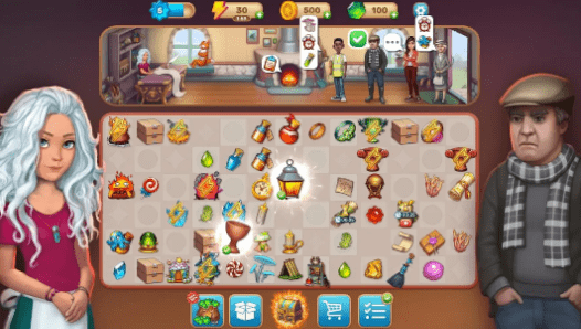 1、合并相似的物品以获得有用的物品和工具来改善和清洁女巫的房子。