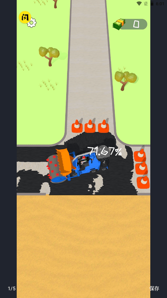 1、全新的沥青挑战开启,抓紧时间行动吧,驾驶载具快速铺沥青。