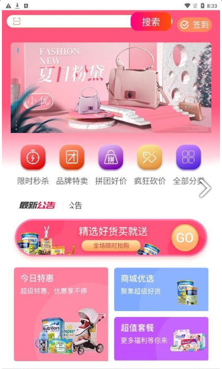 潮流女装、鞋包配饰、美妆护肤、家居生活、母婴健康、零食数码等等,每天更新!