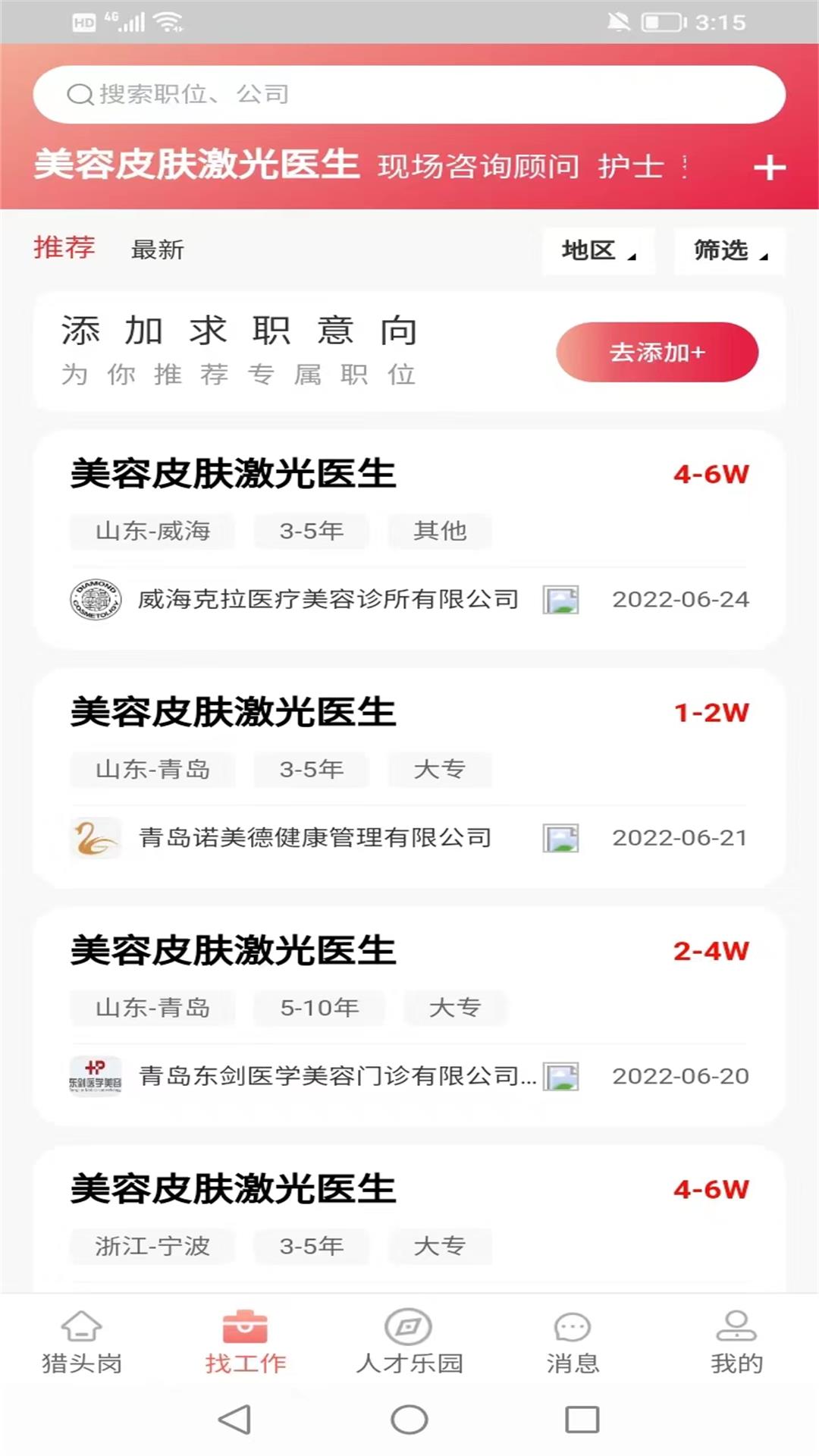 以供医美候选人快速精 准匹配,使得求职过程快捷有效
