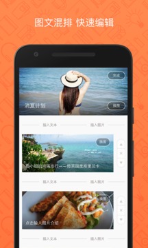 只需要一分钟,多图为你带来最简单的公众号,最优美的朋友圈。多图是一款操作简便的手机多图文编辑工具,让你的朋友圈突破9张图的限制。无需注册微信公众号,也能在朋友圈发布优美的文章。一键分享至多个社交平台,朋友圈、微博、QQ等等。单篇文章支持反复编辑,发布之后亦可修改。