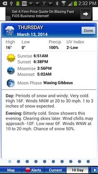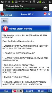 - 警报通知:获取时间要求严格的美国国家气象局警告,美国甚至当你不在的Intellicast应用程序。如龙卷风,强雷暴,洪水,暴风雪和。注:对于严重警报的完整列表,请参阅在应用程序的帮助。