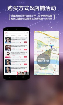 购买方式&店铺活动】试戴满意后即可在线下单,尽享网购优惠。附近店铺定位功能将实体店优惠一网打尽。