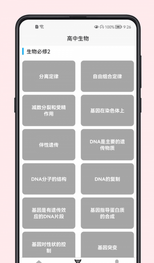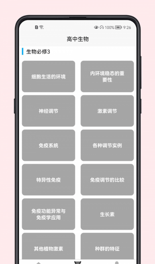 高中生物教程app致力于不断提升小伙伴们的生物成绩。平台上海量的课程资源及练习题目可供用户们随时线上学习,学习过程既轻松又高效,能够不断提升小伙伴们的生物成绩。如果这款软件可以对你提供帮助,赶紧下载试一试吧!
