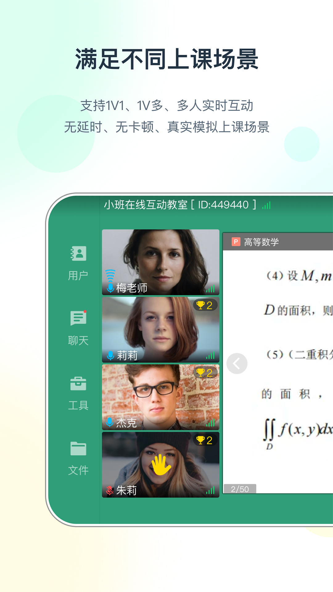 具有一对一、一对六、一对n等多种直播教学模式,可以选择合适的模式进行授课