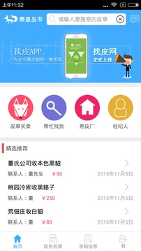 最新版本为您提供了:皮草买卖,帮忙找货,经纪人通讯录,看皮短信预约等服务!