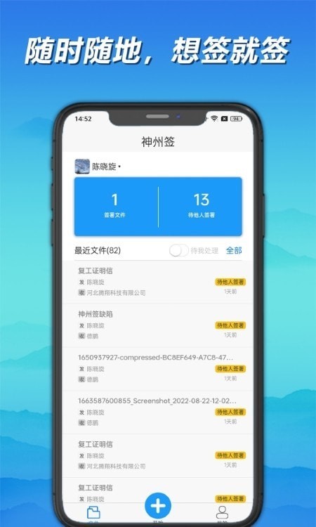 神州签app里面有各种合同签署的服务,合同的审批都可以快速的完成,各种合同的签署都可以安全可靠的完成,签署信息一目了然,随时可以在线进行签署,都是安全正规的,可以满足不同场景下的使用,各种功能都可以快速的修改,身份认证都很快速,服务好。