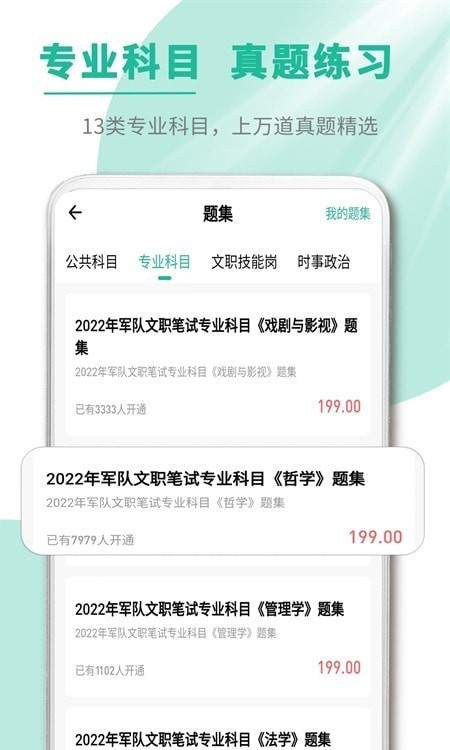 1、章节练习,按章节顺序练习,循序渐进的掌握文职考试知识点。