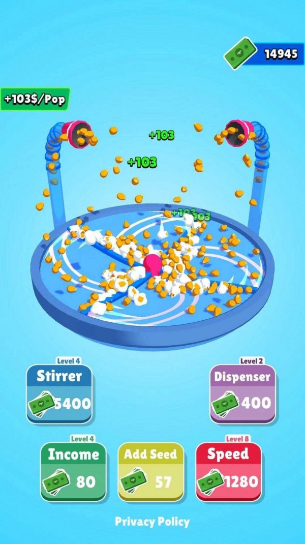 爆米花闲置3D是一个休闲爆米花游戏,制作香喷喷的爆米花,根据不同收益的数字来制作各种不同分量的爆米花,点击屏幕操控机器启动就可以了,游戏的玩法都很简单,只要有收益就要不断的去制作爆米花,游戏的画质是3D类型的,合理去经营自己的爆米花机器。