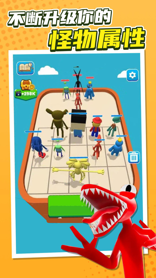 彩虹朋友合并大师是一个合并闯关类游戏,玩家需要控制自己的棋盘,利用各种怪物来合成升级,成为最强的怪兽击败对手,完成一关就可以领取很多的奖励,挑战各种任务,解锁所有的成就,成为融合之王,超多的战斗技巧可以去学习,战斗场景都很刺激有趣。