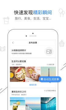 支持100张照片,10秒钟自动生成故事,快速分享到朋友圈。