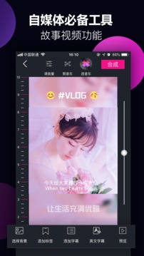 [故事视频]抖音和快手上最火的短视频模版,选择视频插入+中英文字幕配置+海量视频和图片素材。