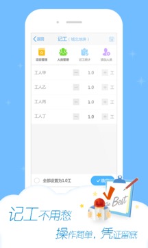 该APP从建筑业工人找工作、计工时、领工资等入手,实现实名认证、业务撮合、工资支付、数据可视化、信用评价、金融理财、生活社交、社会公益等八大功能,为企业提供有效的管理工人工作和工资的解决方案,为工人提供求职、领工资、社交、生活公益、金融理财等解决方案,还可衍生出消费、娱乐、培训、婚恋等多个解决方案,让建筑工人有尊严的工作和生活。"