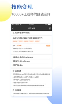 1、 平台每日发布覆盖全国的IT项目工单,随时随地可参与抢单