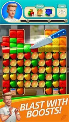 厨师益智爆炸Chef Blast是一款厨师消除类游戏,消除的东西都是水果和蔬菜,在密密麻麻的物品里面找到几个相同的然后进行消除,把所有的物品消除完就算过关,每过一关就能提升自己的等级,关卡都很多,越到后面挑战难度就会越大,游戏会免费提供道具给你使用。