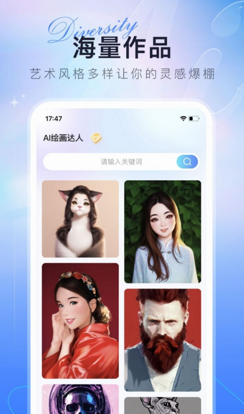 AI绘画达人app能够让小伙伴们体验AI绘画带来的乐趣。用户们只需在软件中输入一款文字描述并选择绘画的风格,软件便可以自动生成集美的画作。同时可以使用软件自己进行绘画创作,多种绘画工具可以免费使用。小伙伴们可以在软件中发挥想象力及创造力绘画出有趣的作品。如果你也喜欢绘画的话,赶紧下载这款软件试一试吧!