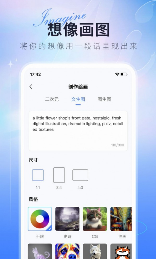 想像画图,将你的想像用一段话呈现出来,即刻就可以生成精美图片