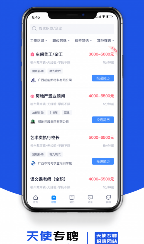 天使专聘app作为一款非常专业的求职照片软件,能够帮助小伙伴们快速找到合适自己的工作。软件提供的招聘信息也都是真实可靠的,无需再去工作难找而烦恼。有需要的朋友们还在等什么,快来下载体验吧!